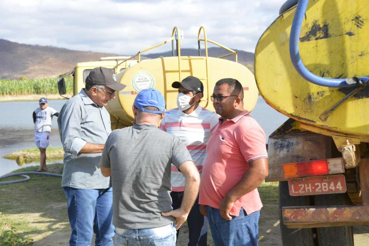 Itamar apresentou para os munícipes os dois carros pipas contratados pela prefeitura, por meio de convênio com o Governo do Estado, que irão levar água do açude Poço Dantas para abastecer as caixas d’água comunitárias das localidades já mencionadas. A água que está sendo disponibilizada para a população recebe tratamento a base de cloro, de acordo com o que preconizado pelo Ministério da Saúde.