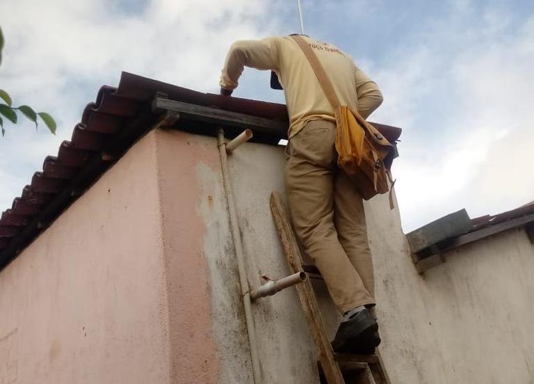 Os Agentes de saúde também têm fortalecido a campanha de combate às arboviroses fazendo orientações e entrega de panfletos em toda a cidade.