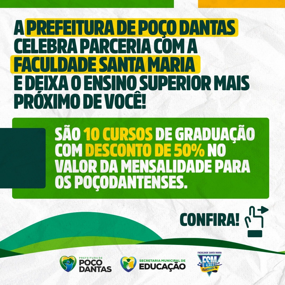 A iniciativa já recebeu a adesão do prefeito Itamar Moreira, que frisou a importância da parceria e destacou que é uma grande oportunidade para que os poçodantenses, especialmente os jovens, possam investir em sua formação e capacitação. “Esperamos que em um futuro breve tenhamos cada vez mais profissionais qualificados em nosso município para suprir as necessidades da população e o caminho é investir no conhecimento”, disse Itamar.